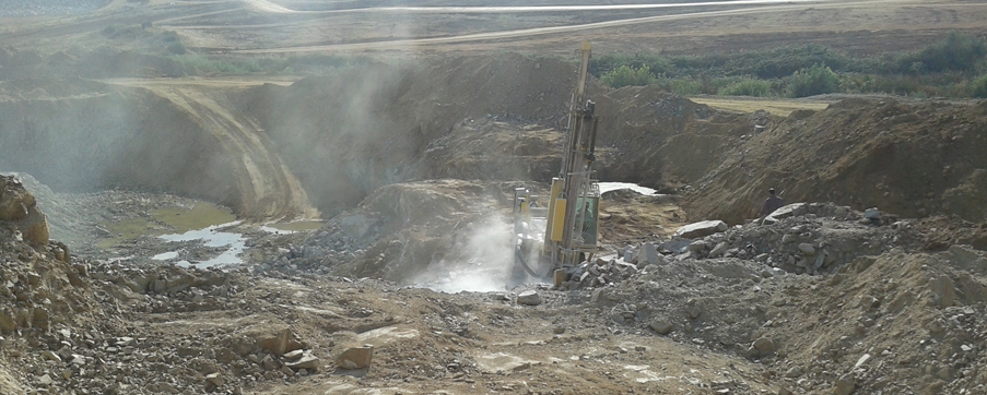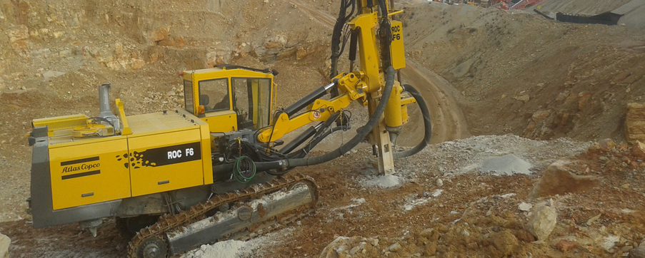 Dispomos também de um perfurador Roc F6 com capacidade de furar até 40 metros de profundidade e com um peso de 20 toneladas. Este permite aplicar explosivos também para o desmonte de pedra.