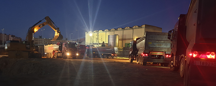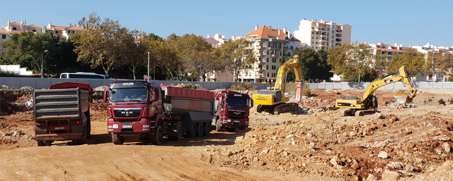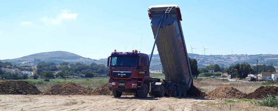 Para a remoção das terras ou transportas das mesma dentro da obra, dispomos de uma frota de camiões rígidos e articulados, com capacidade de transportar até 24 metros cúbicos, e dumpers com capacidade de transportar até 28 metros cúbicos.